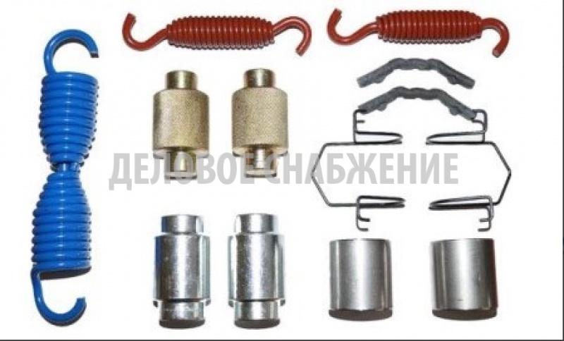 В ремкомплект на одну сторону входит: ось ролика- 2 шт фиксатор кулачкового вала - 2 шт штырь возвратной пружины - 2 шт пружина оттяжная колодок (возвратная) ) - 1 шт удерживающая пружина - 2 шт анкерный палец - 2 шт втулка суппорта - 2 ш т